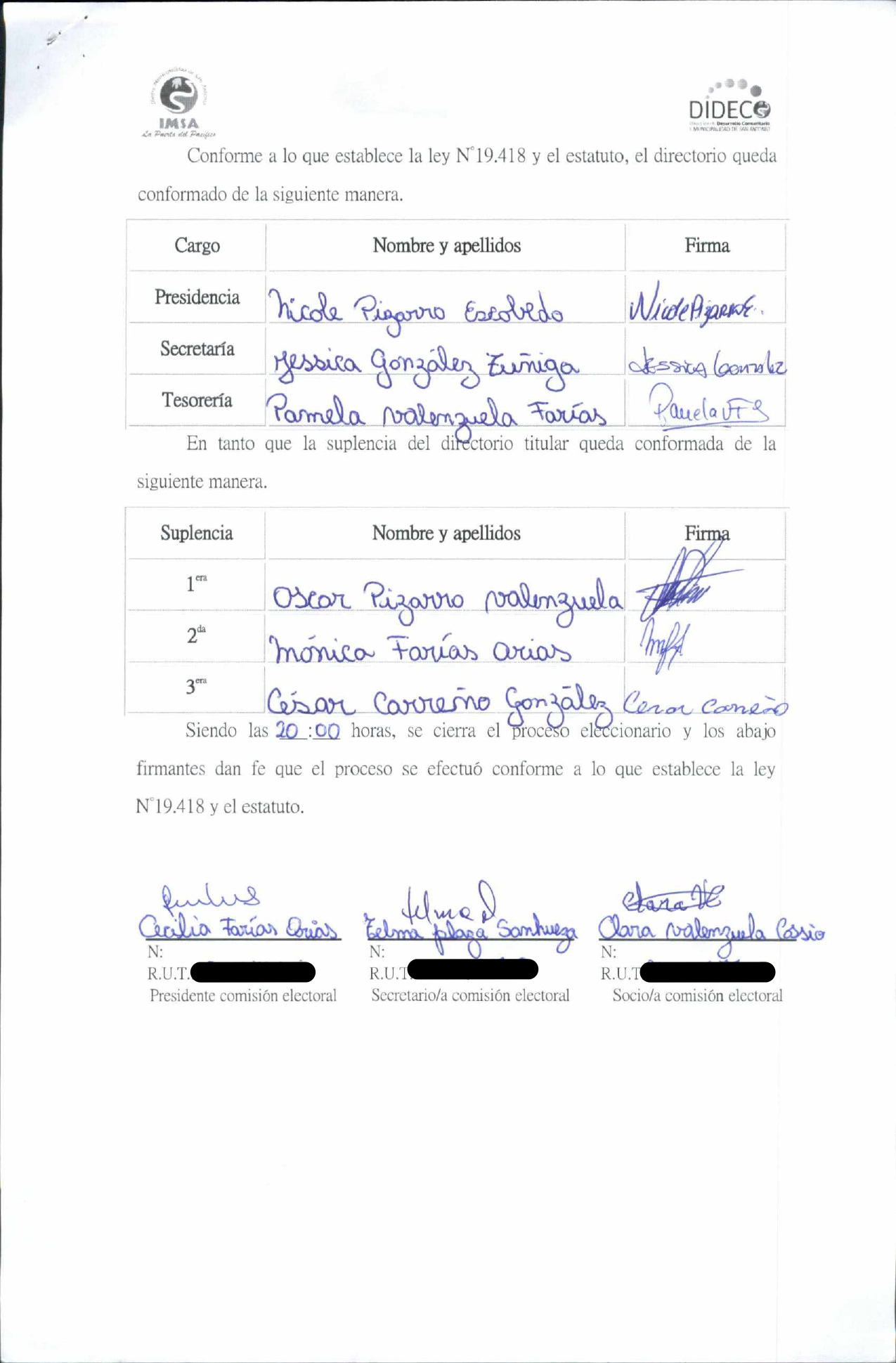 Acta de elecciones "JJ.VV LA FLORESTA"