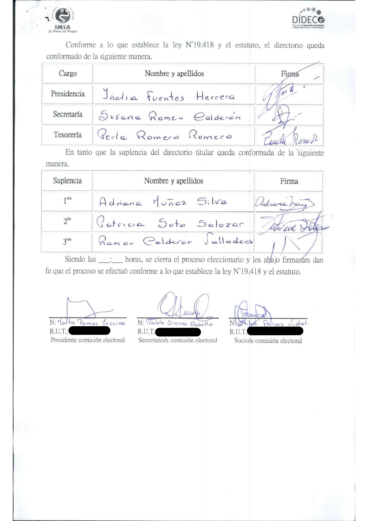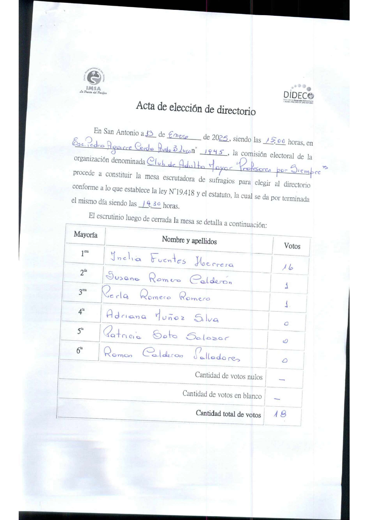 Acta de elecciones "CAM PROFESORES POR SIEMPRE"
