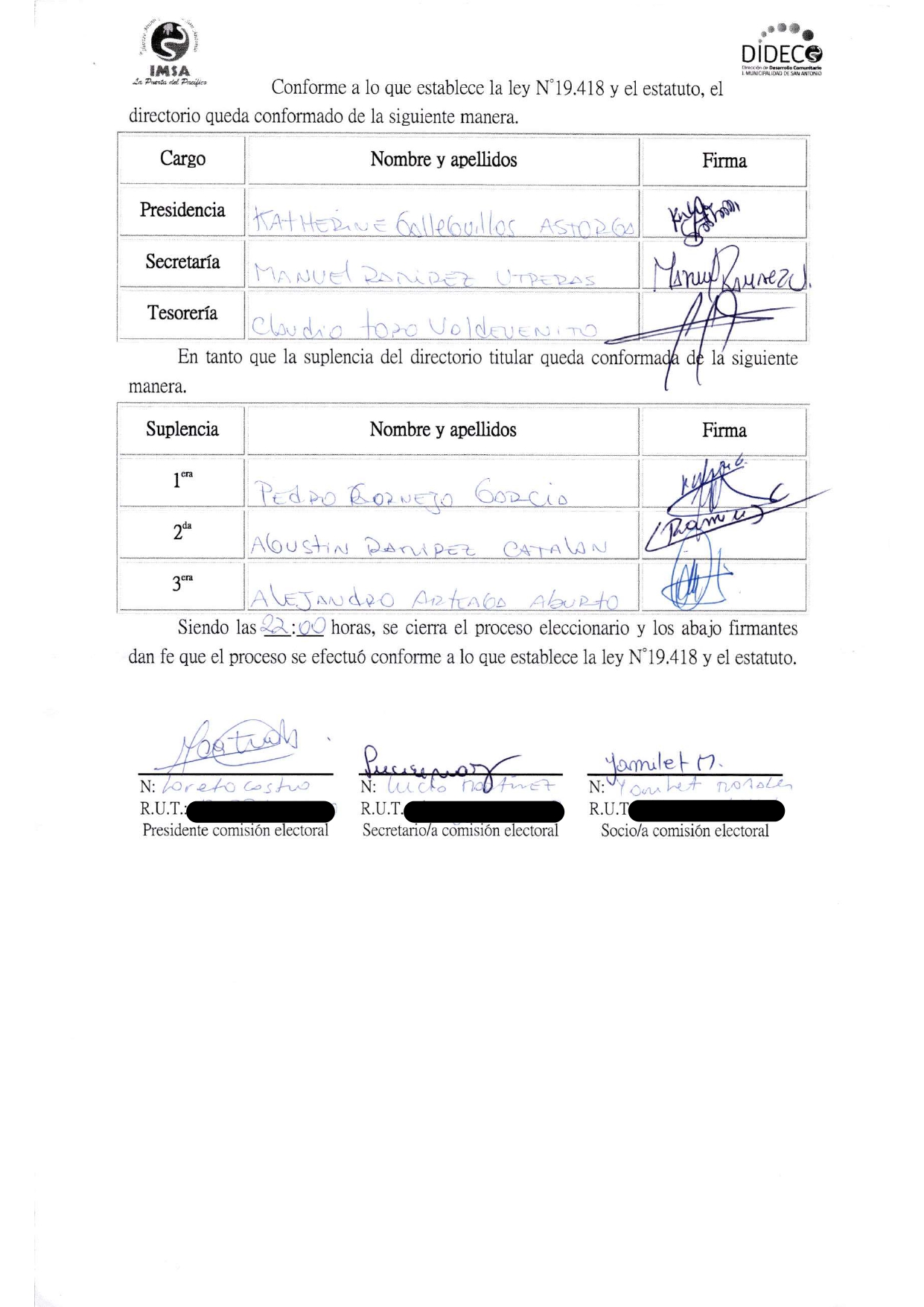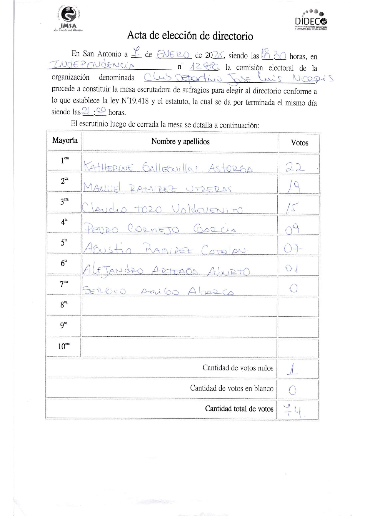 Acta de elecciones "CLUB DEPORTIVO JOSE LUIS NORRIS"