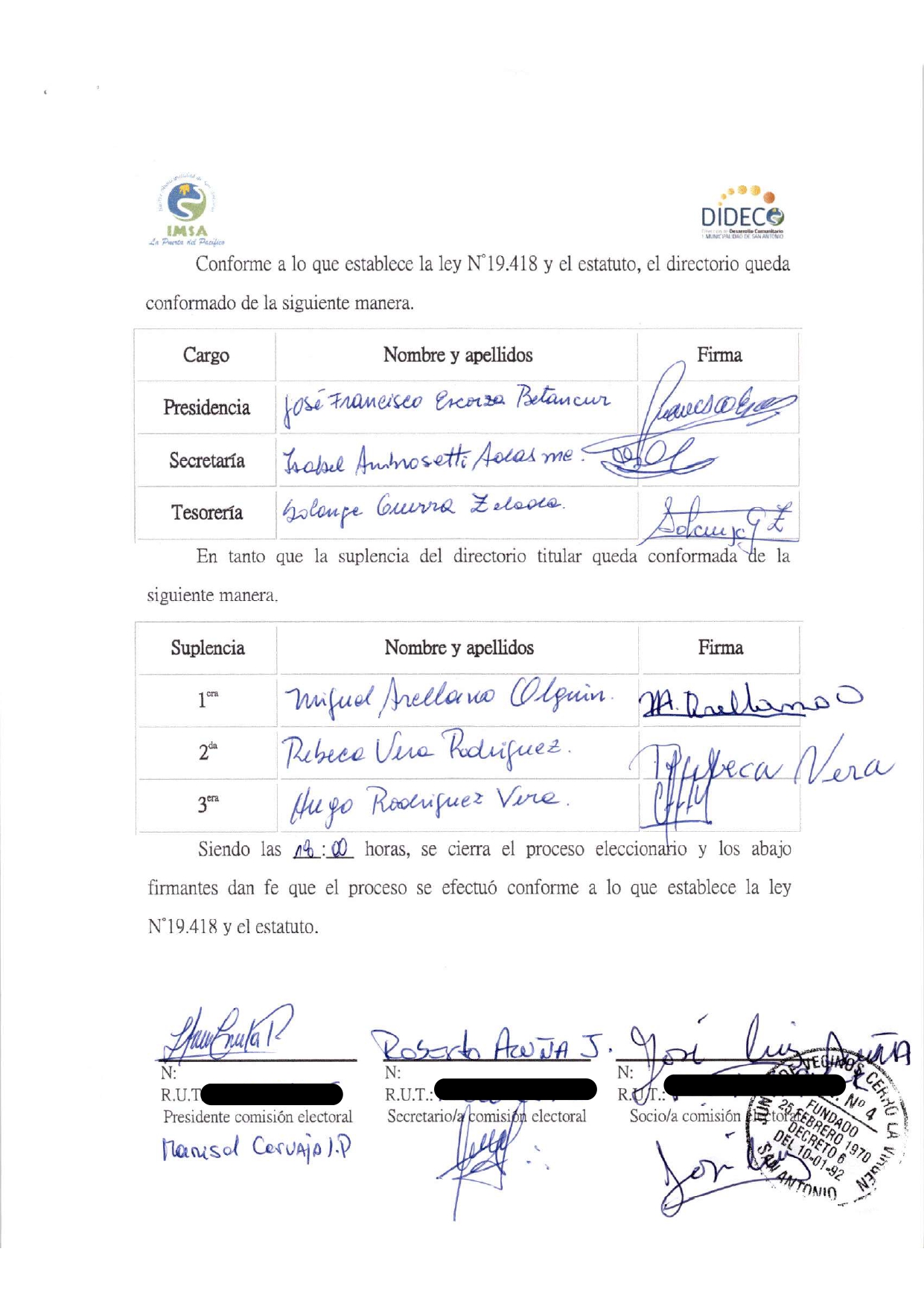 Acta de elecciones "JJVV CERRO LA VIRGEN"