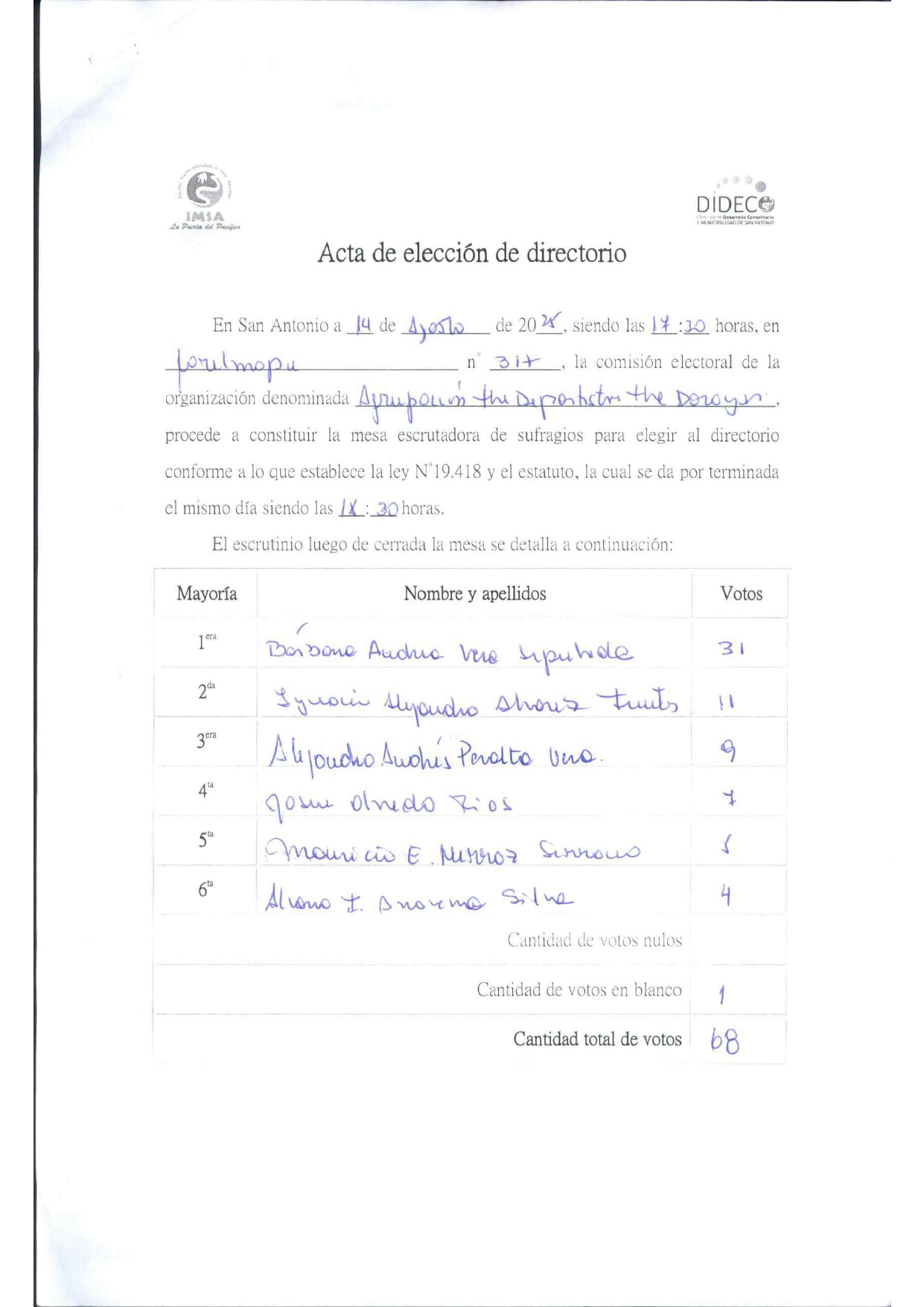 Acta de elecciones THE DORAGON