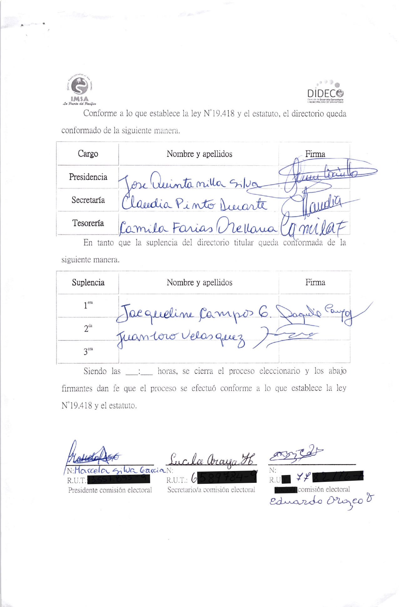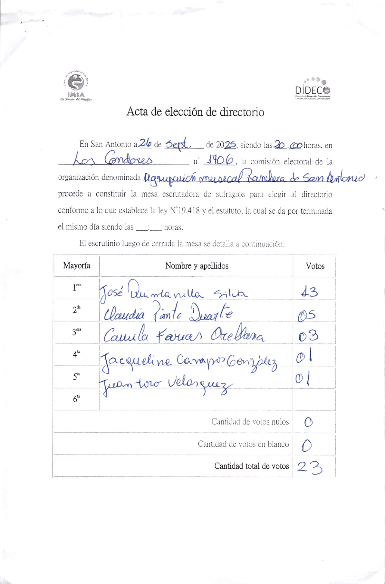 Acta de elecciones AGRUPACION MUSICAL RANCHER