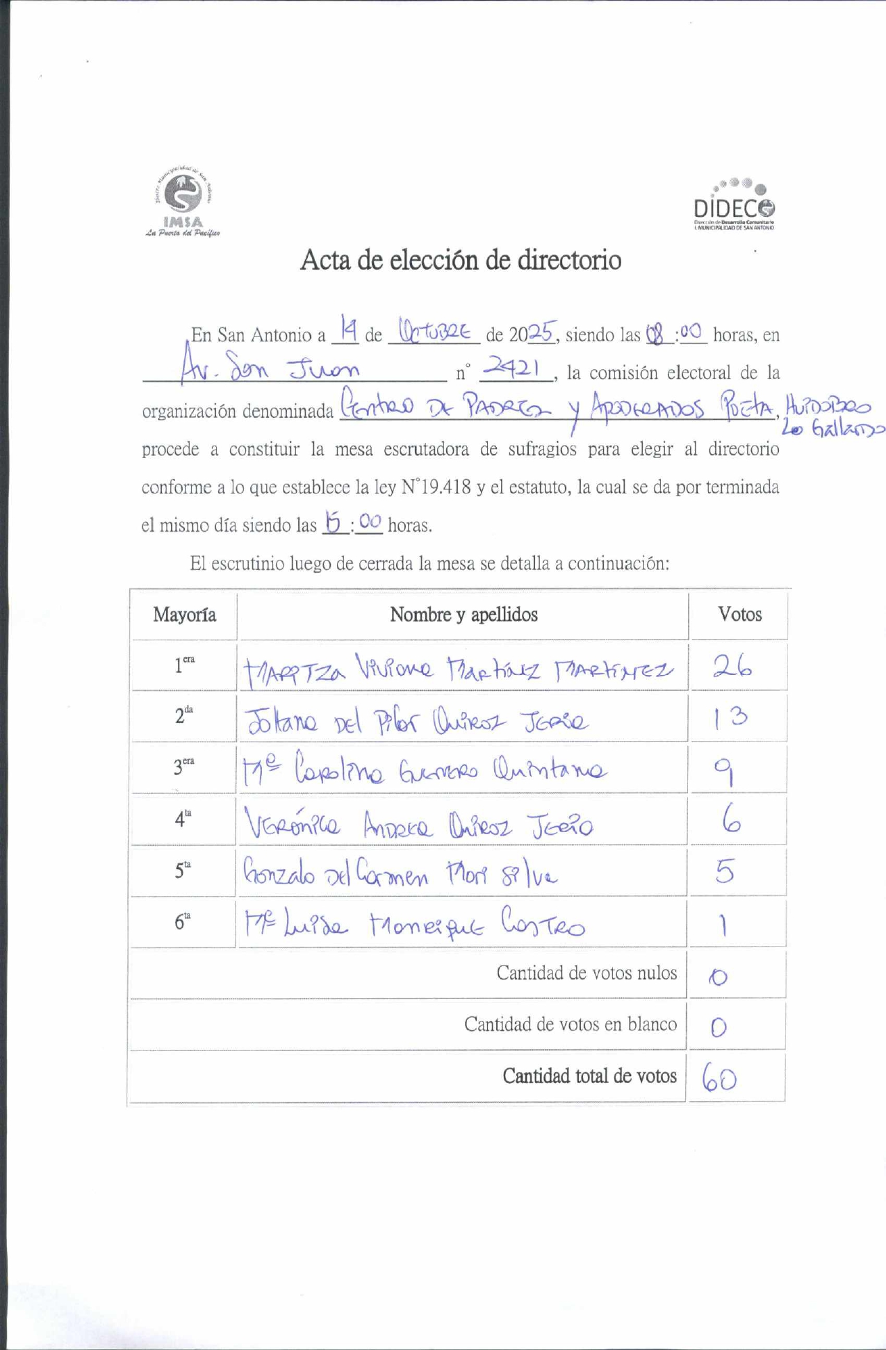 Acta de elecciones CAM VOLVER A EMPEZAR