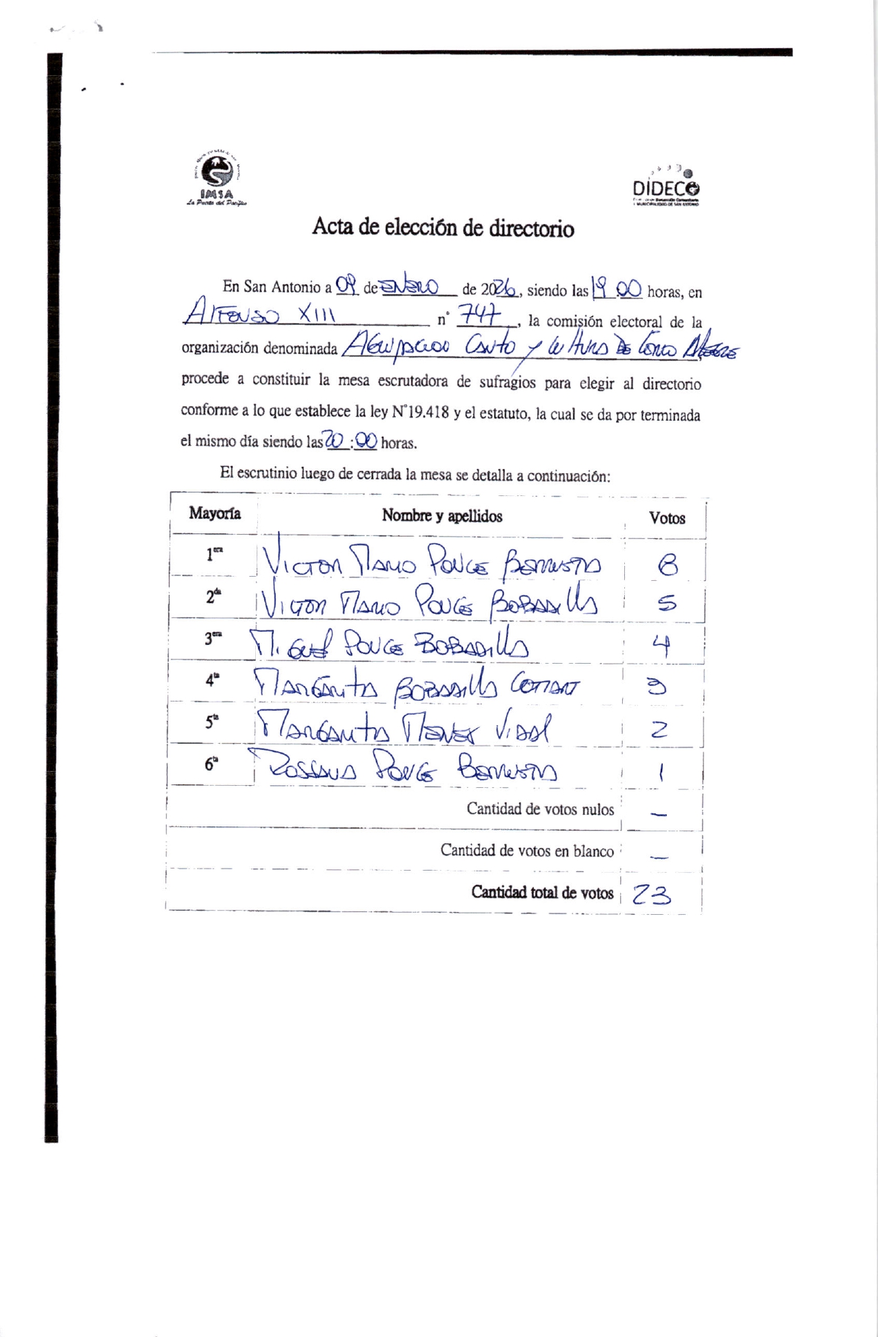 Acta de elecciones CANTO Y CULTURA