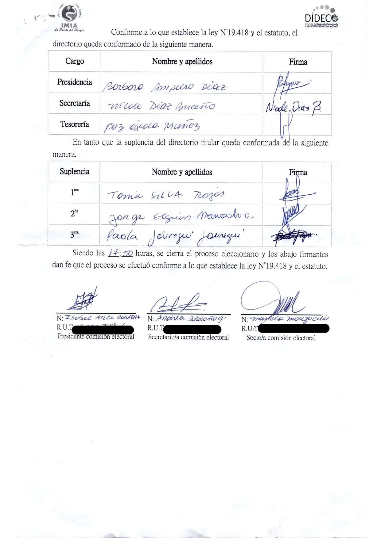 Acta de elecciones JUNTA DE VECINOS EL TRIGAL 2A