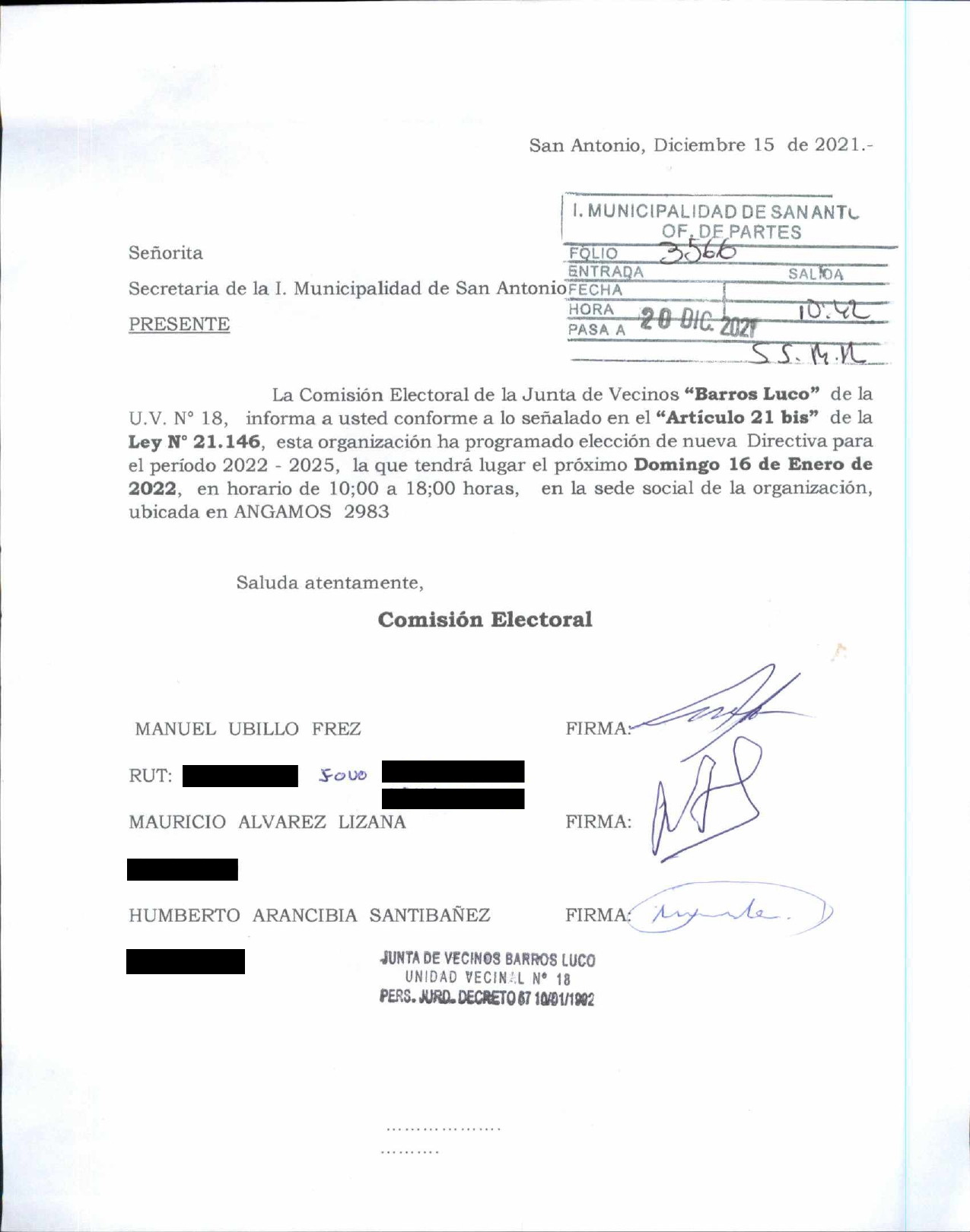 Elecciones "Junta de Vecinos Barros Luco"