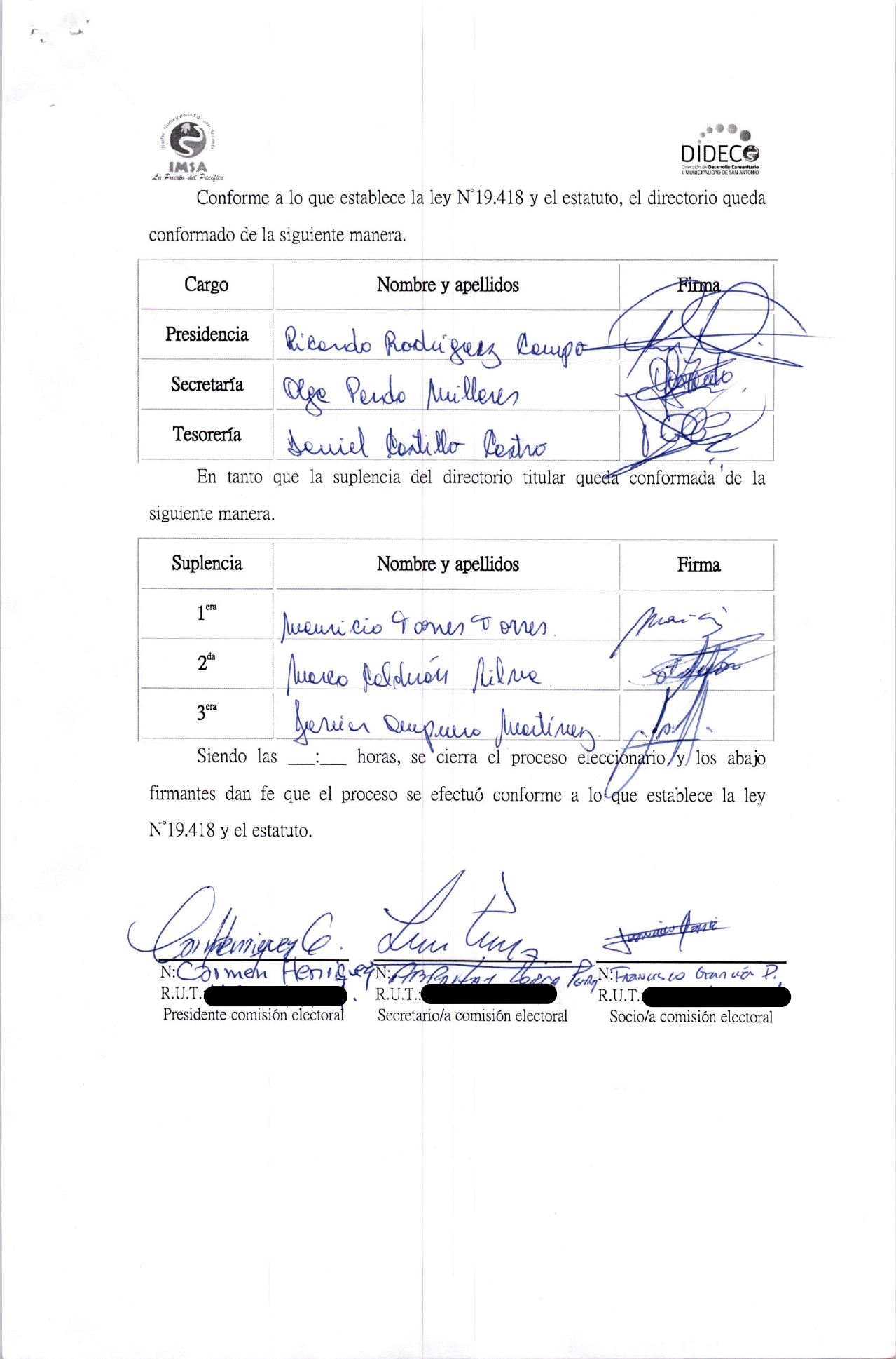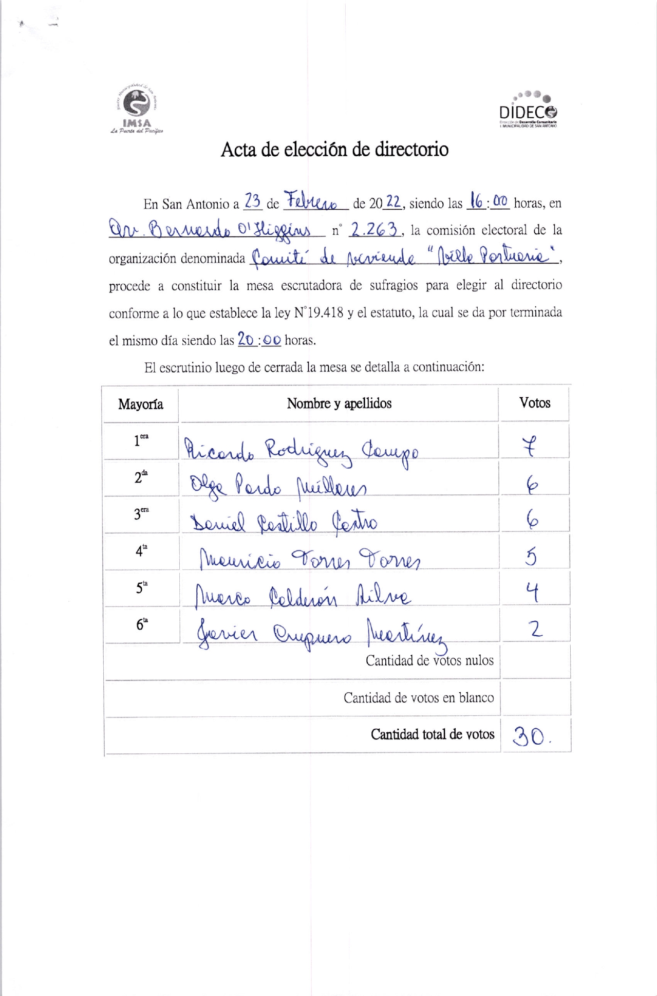 Acta de elección "Comité de vivienda Villa Portuaria"