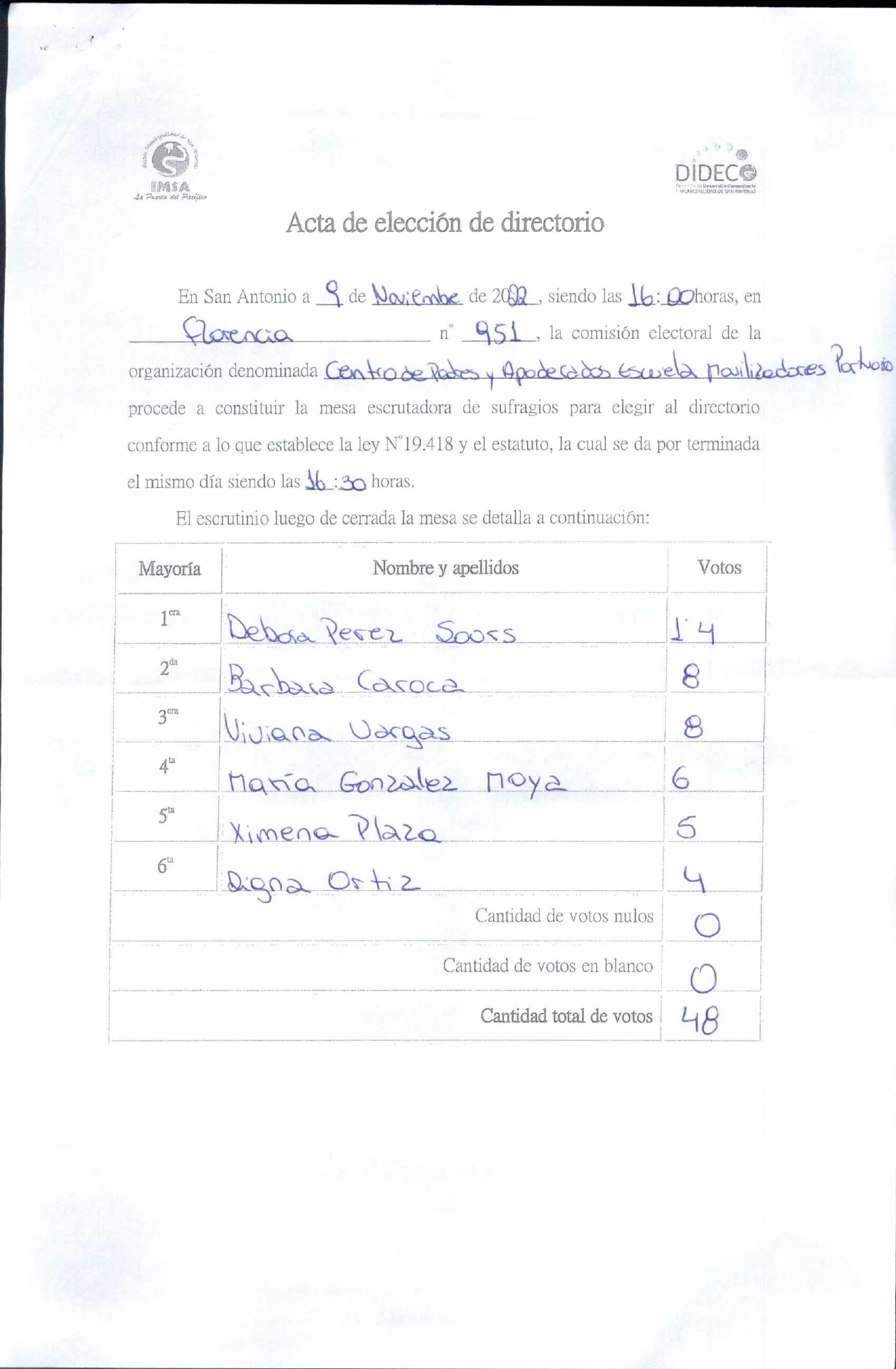 Acta de Elecciones "Centro de Padres y Apoderados Escuela Movilizadores Portuarios