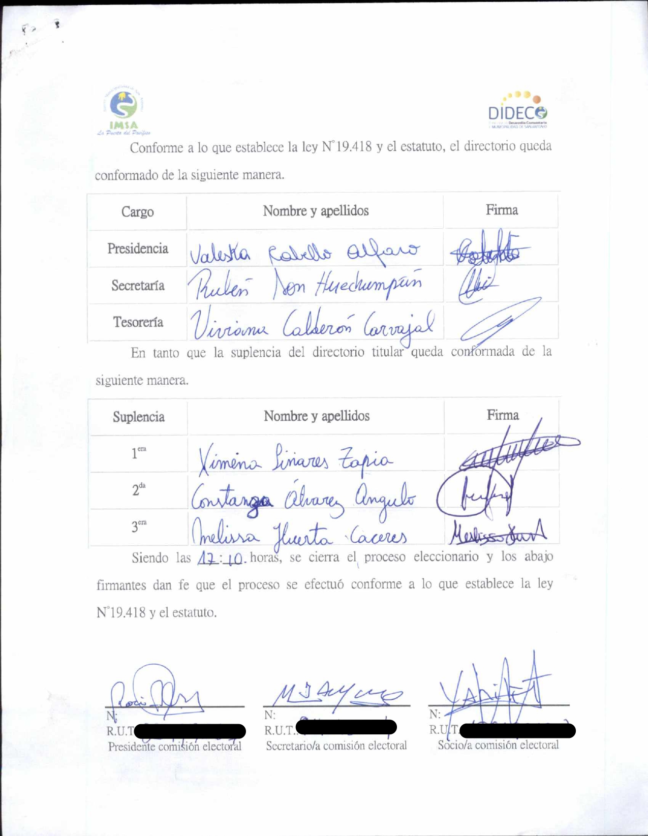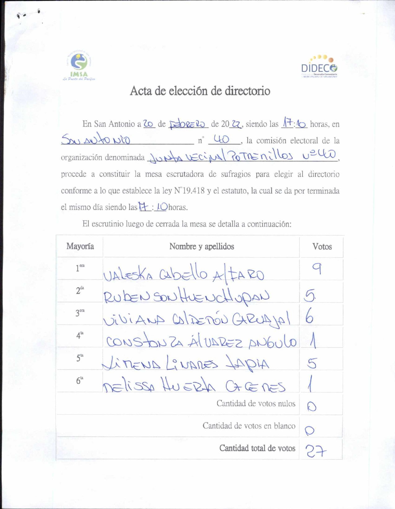 Acta de elección "Junta Vecinal Potrerillos n° 40"