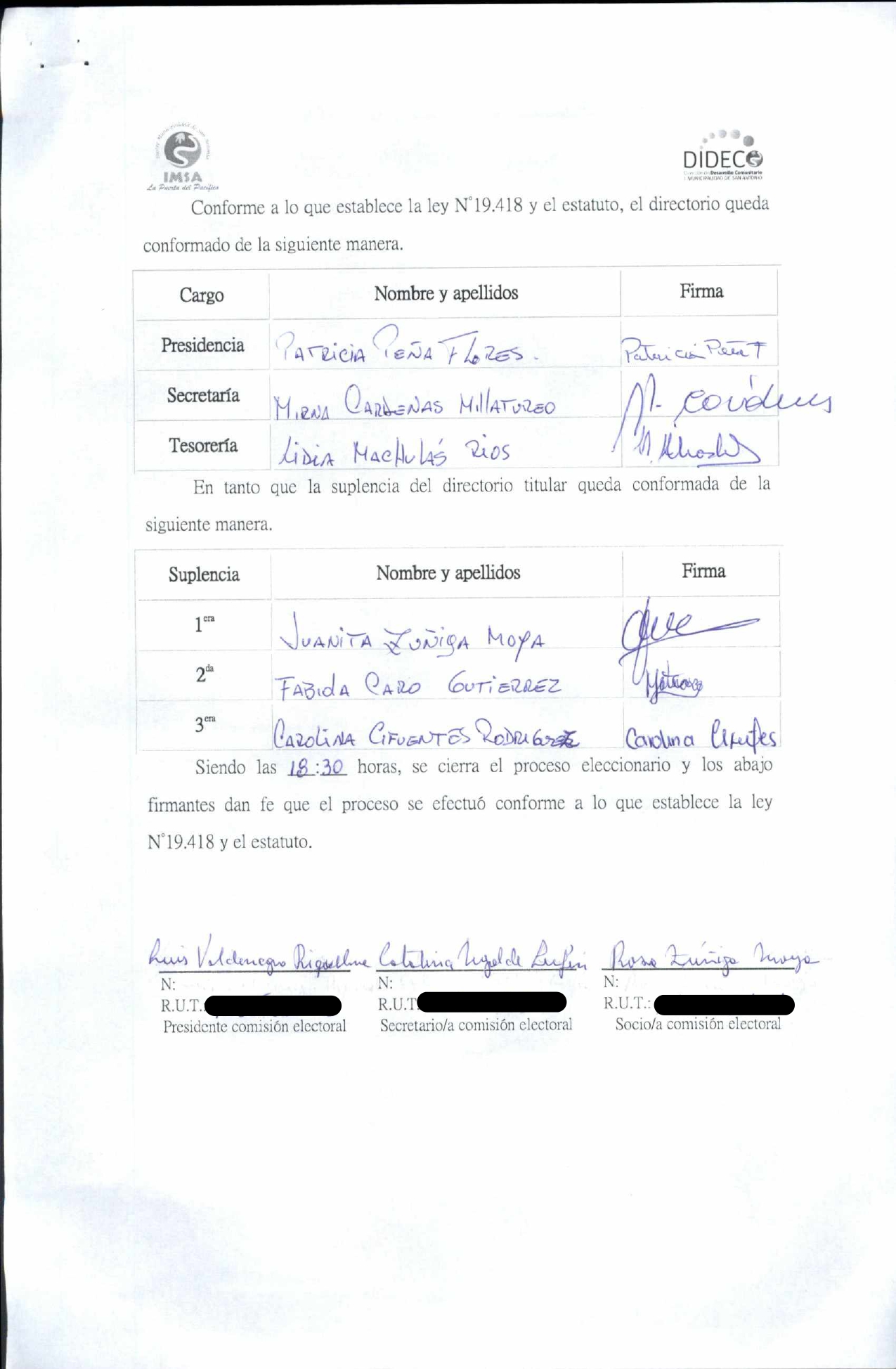 Acta de elecciones "Conjunto folklórico AYEKANTUN"