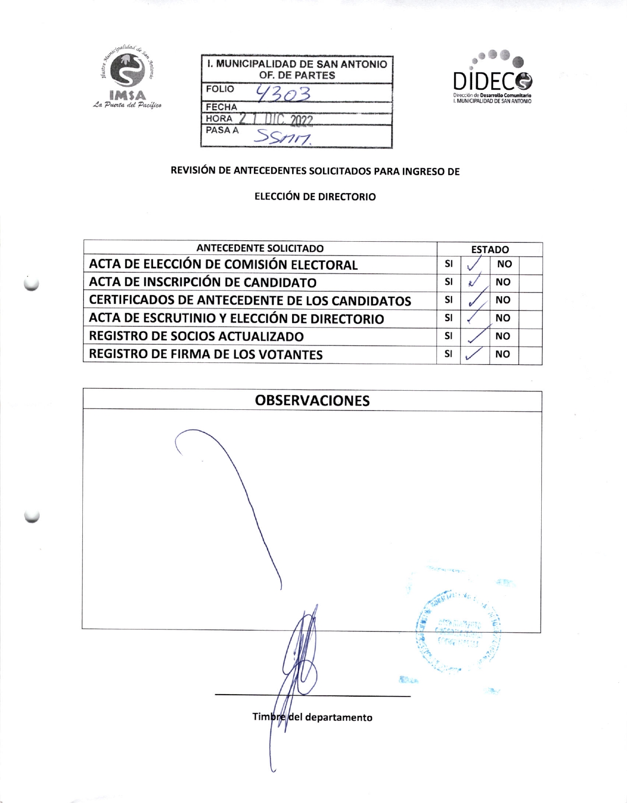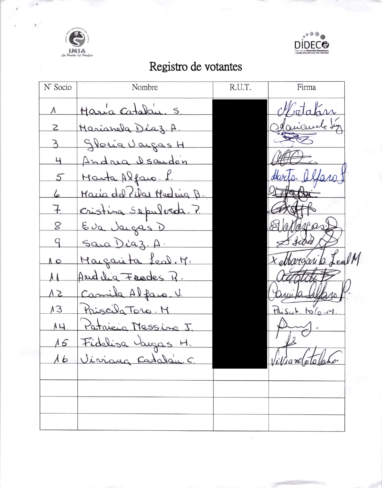 Acta de elecciones "Centro Social Cultural Las Arañitas de Placilla"