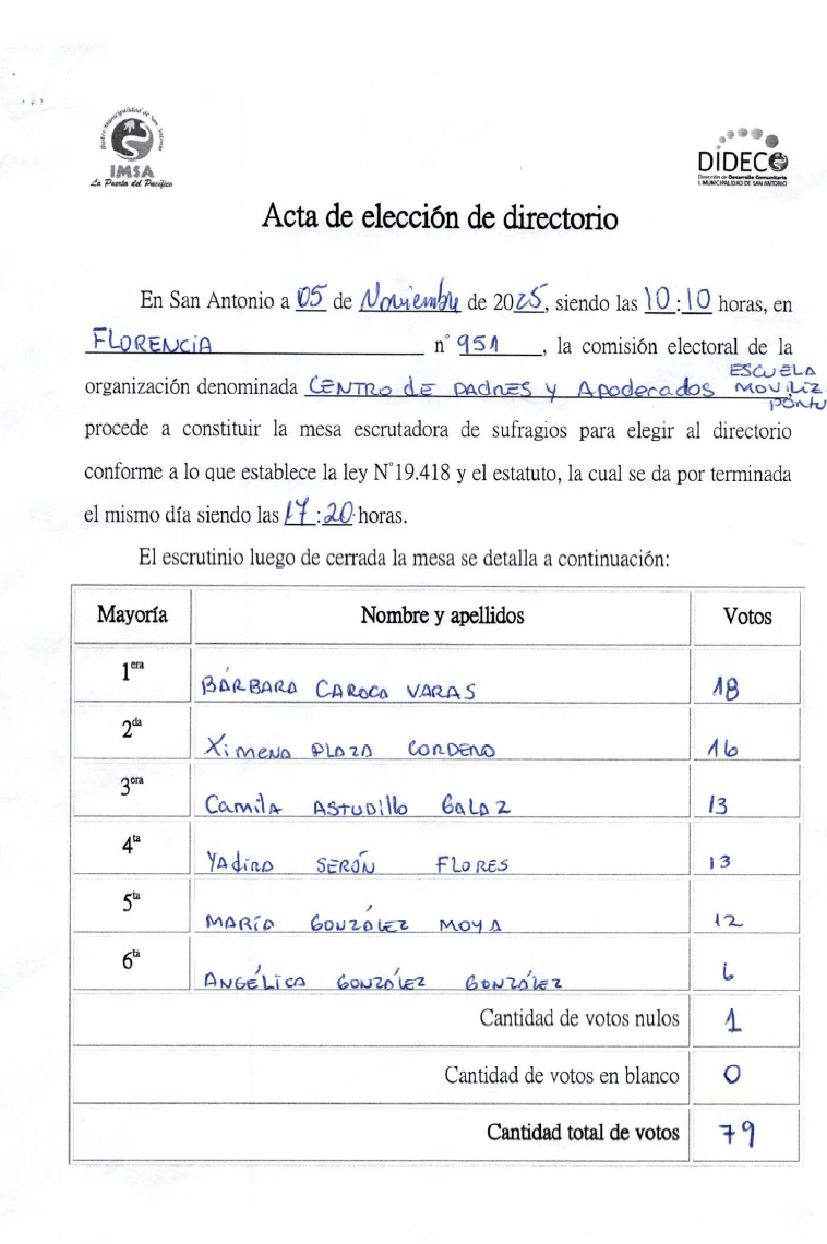Acta Centro de Padres y apoderados Escuela Movilizadores Portuarios