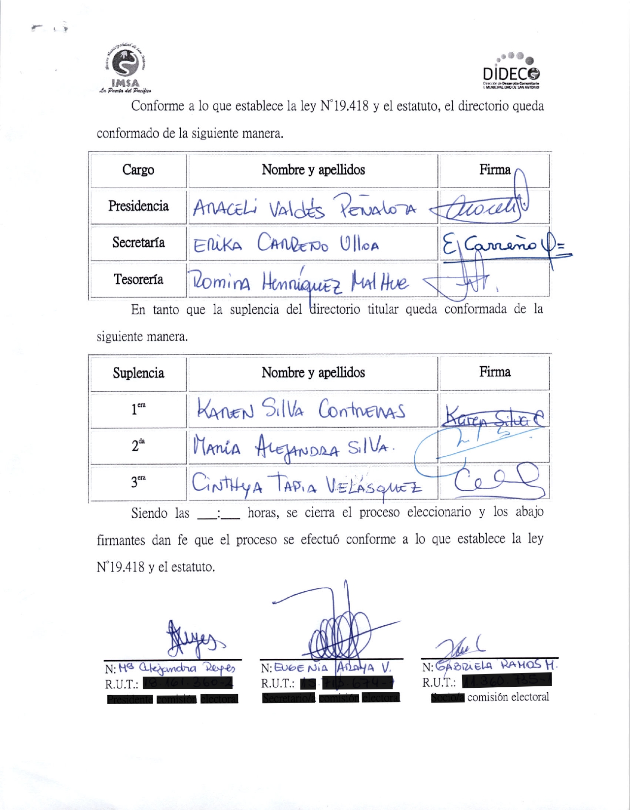 Acta de elecciones CONSTRUYENDO RAICES