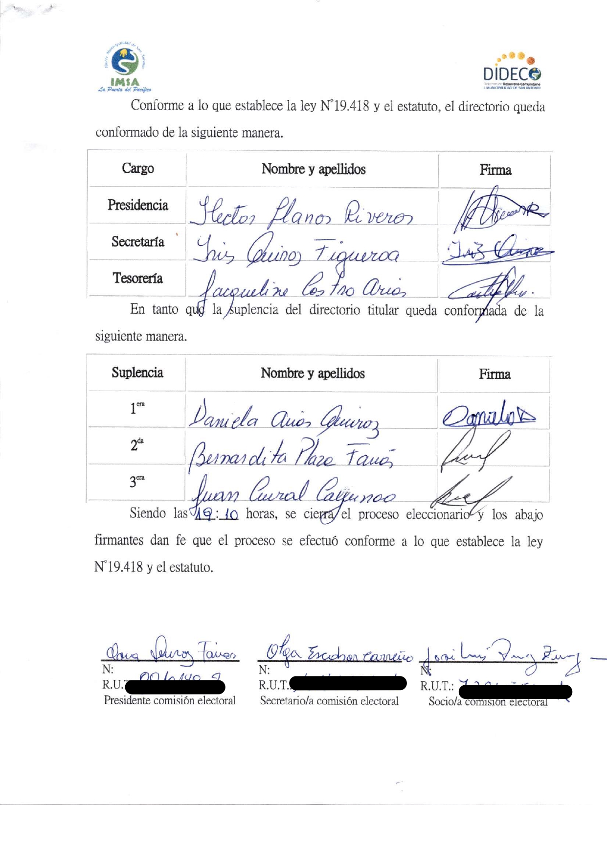 Acta de elecciones JJVV SAN ISIDRO VALLE ABAJO