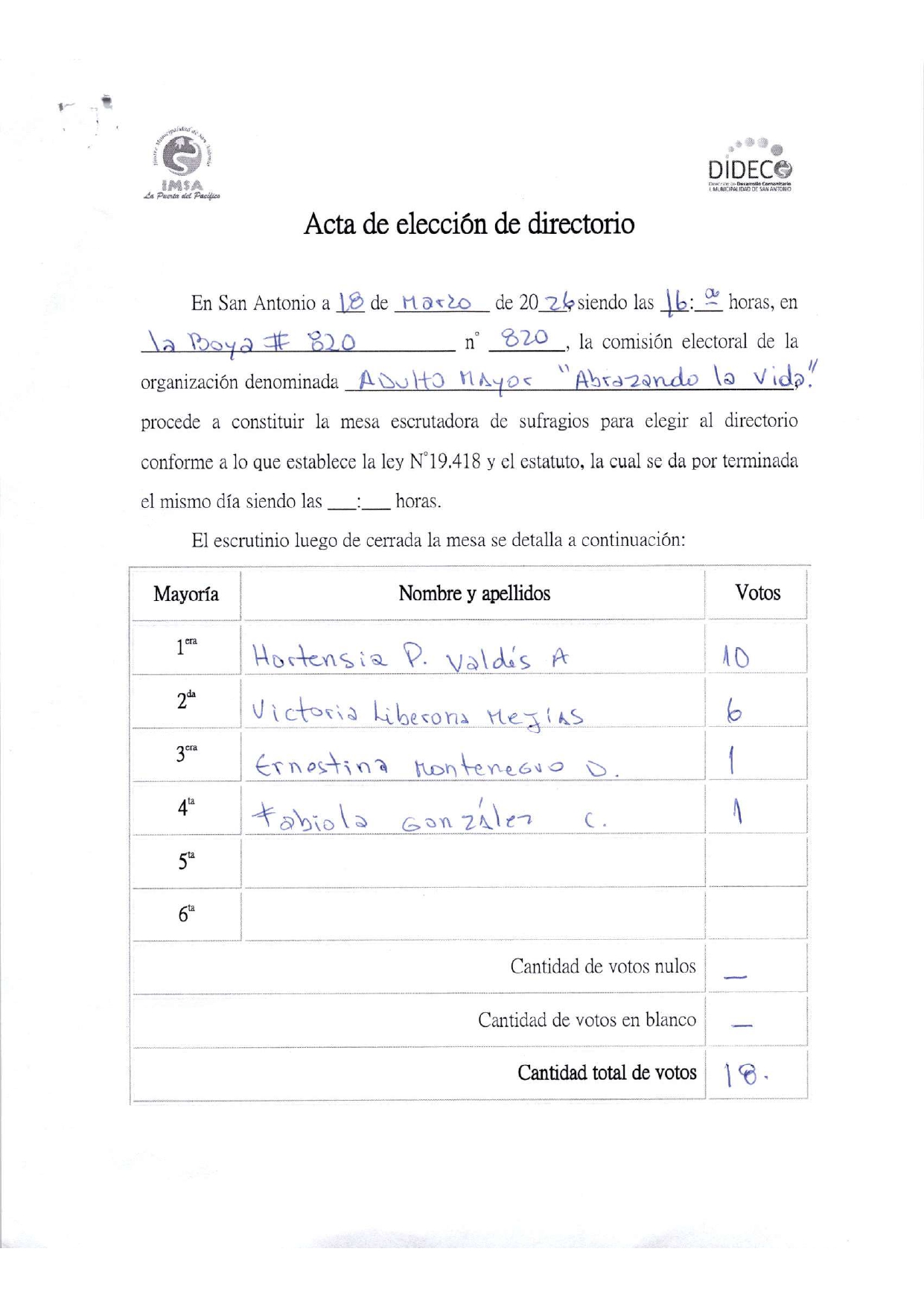 Acta de elecciones CAM ABRAZANDO LA VIDA