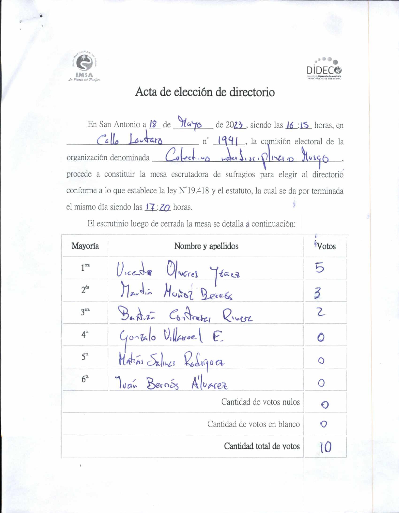 Acta de elecciones "COLECTIVO INTERDISCIPLINARIO MUSGO"
