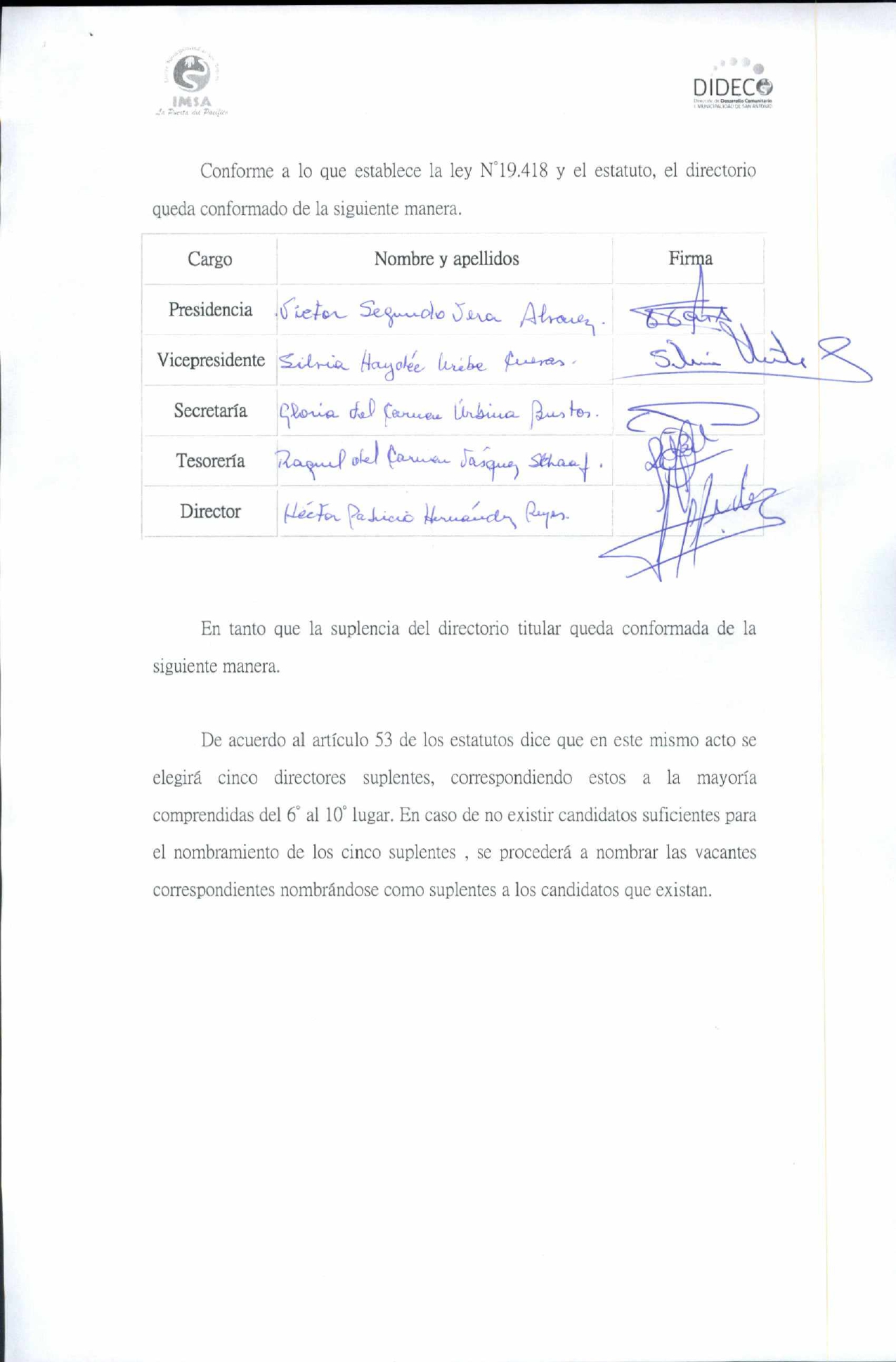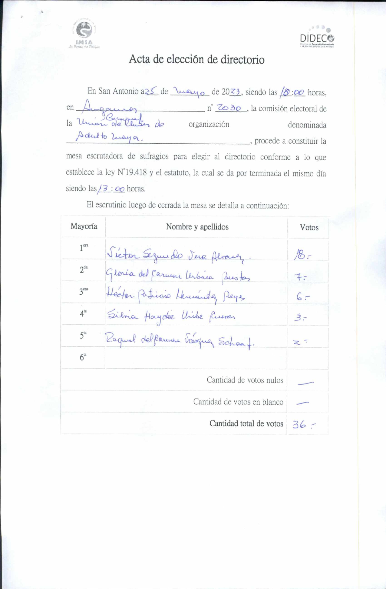 Acta de elecciones "JJ.VV ALTOS DE MIRAMAR"