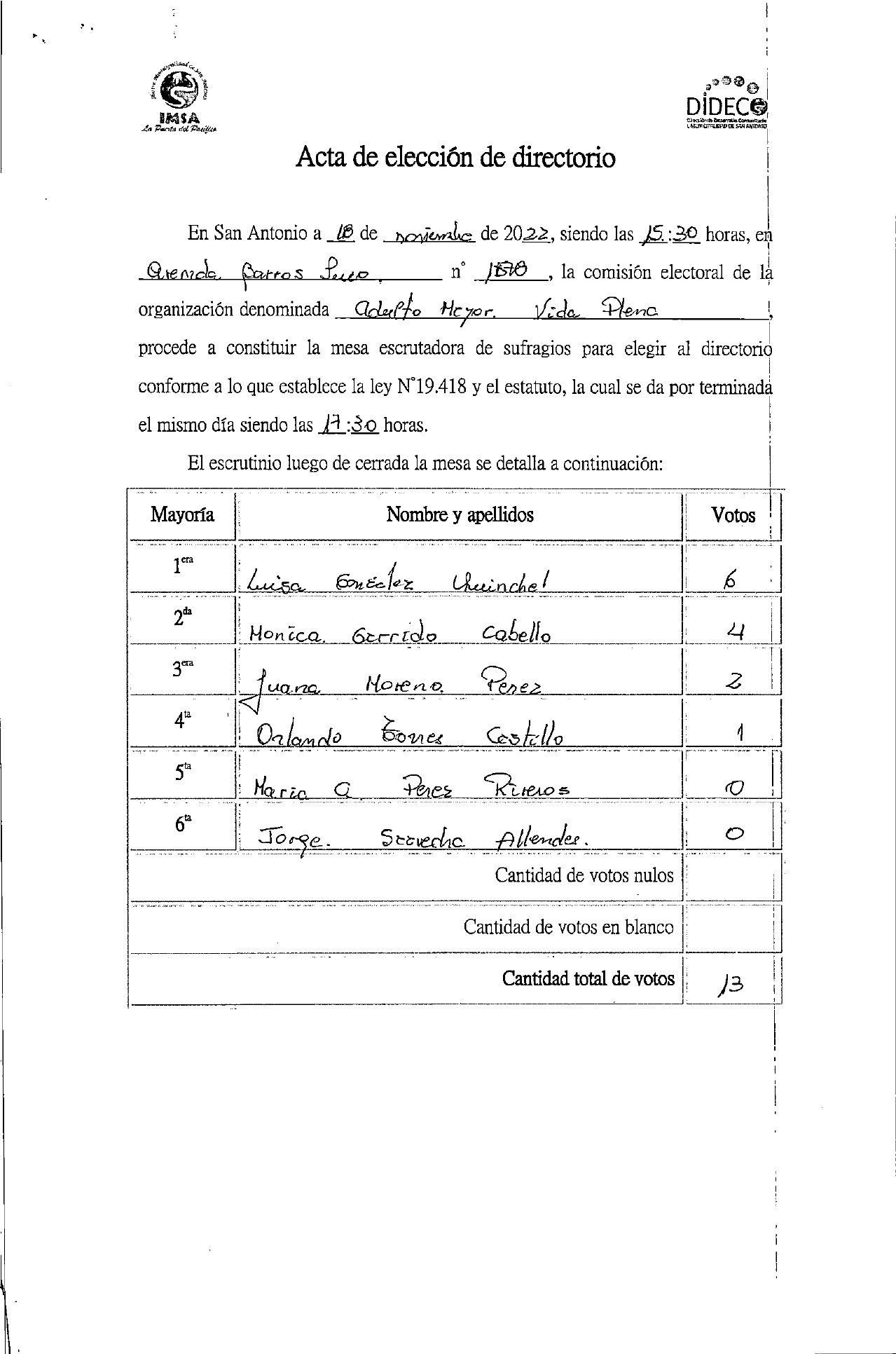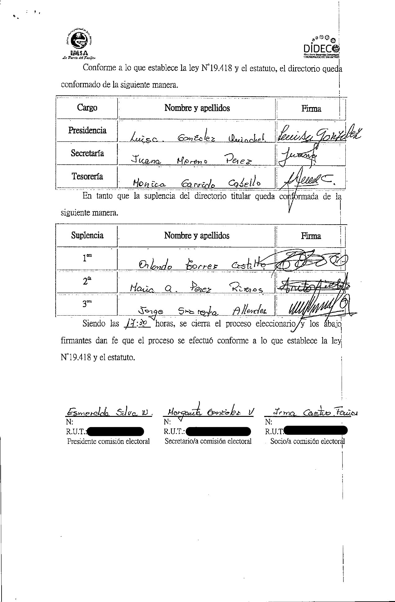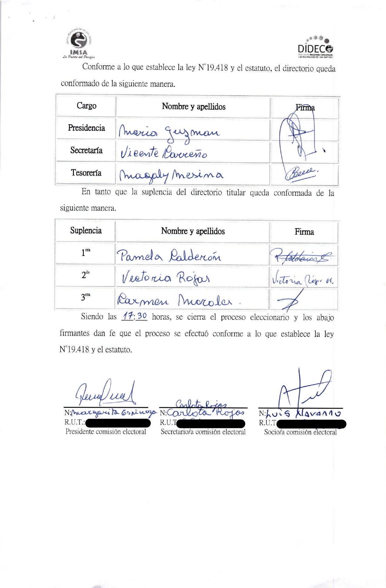 Acta de elecciones "Comité de agua potable rural Leyda"