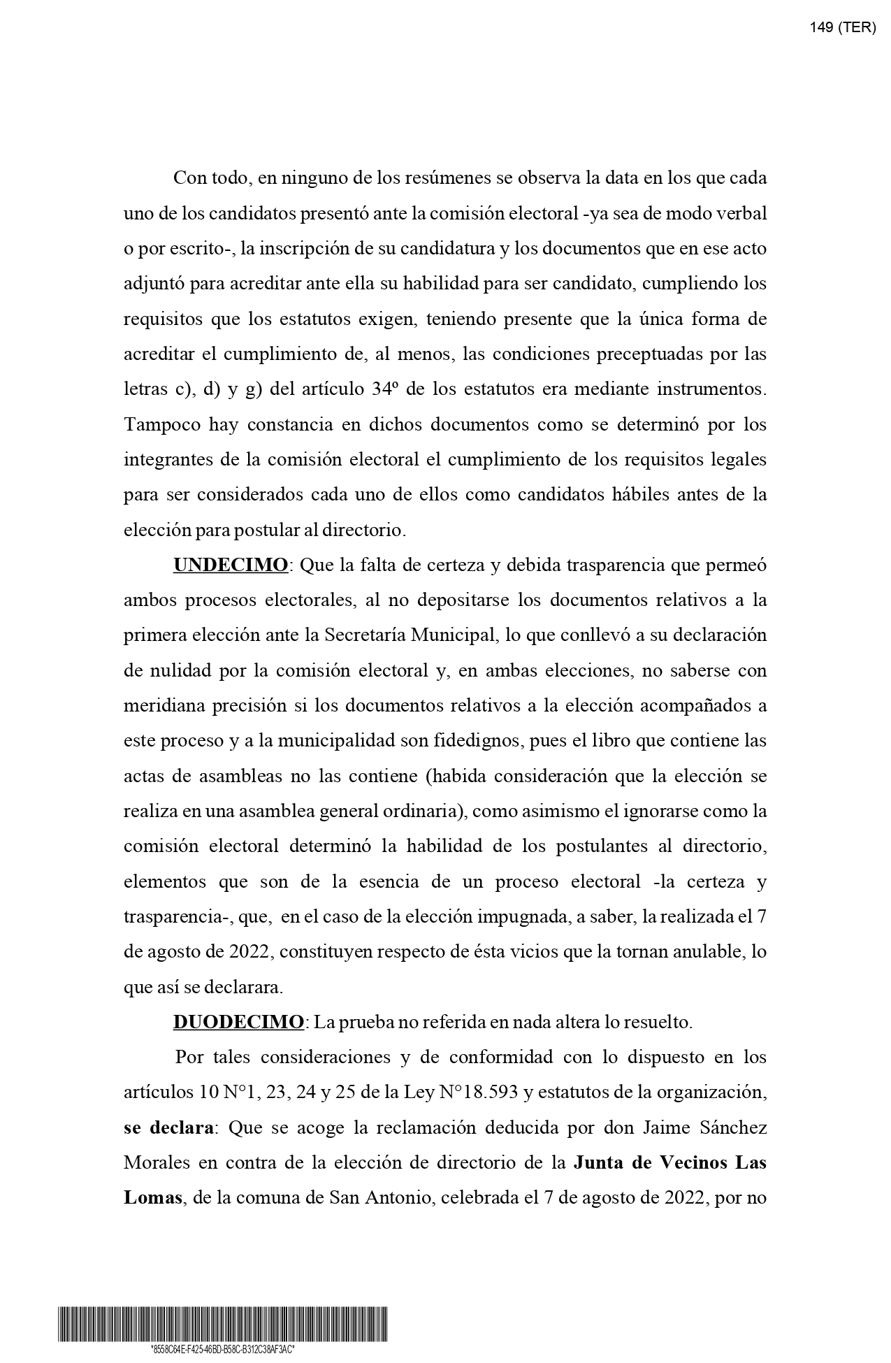 Sentencia Junta de Vecinos Las Lomas en Fallos.